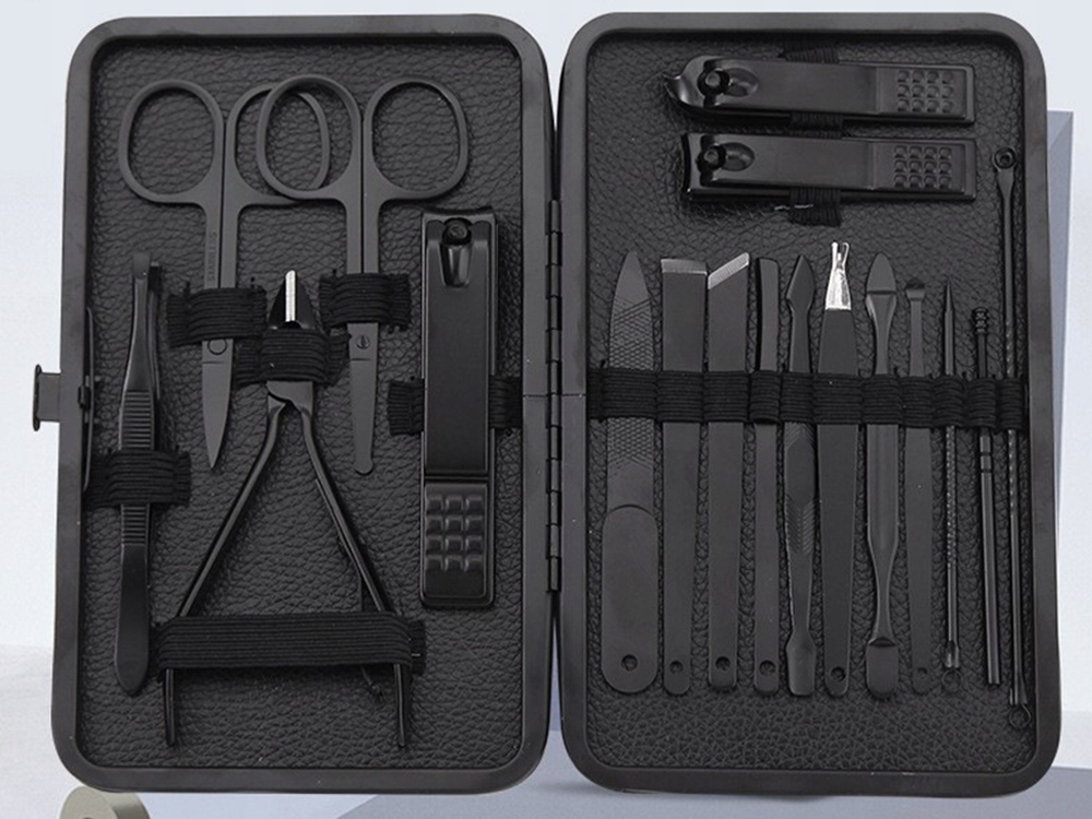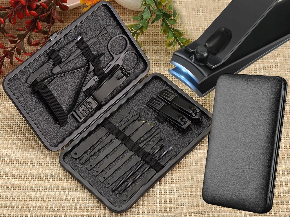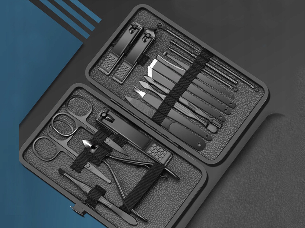 ⭐ Manikúrová sada se skládá z 18 kusů, díky kterým můžete pečovat o nehty na rukou i nohou. Sada obsahuje nůžky na nehty a kleštičky, díky kterým nehty účinně zkrátíte. Boční nůžky na nehty slouží k zastřihování tvrdých nehtů nebo k odstranění záděr, které lze zvednout pomocí přiloženého záděrkového nástroje.