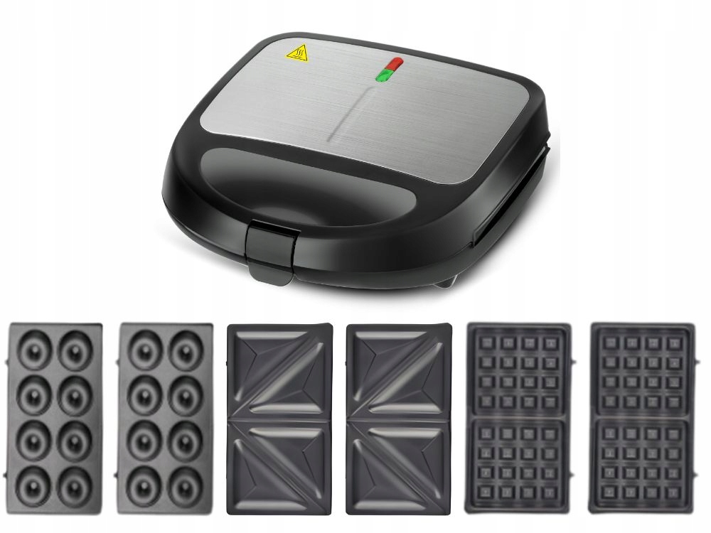 The set includes 3 sets of plates: for toast, waffles and doughnuts. Each of them has a non-stick coating, making it easy to remove food and clean up in no time. The plates are removable, allowing for thorough cleaning after each use.