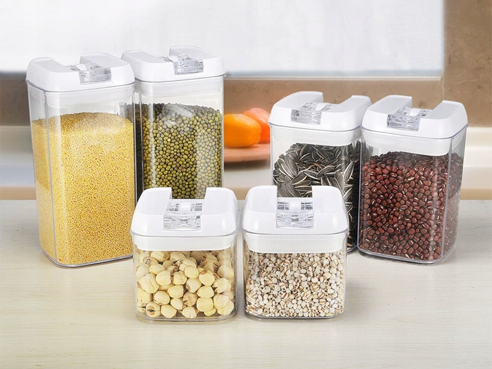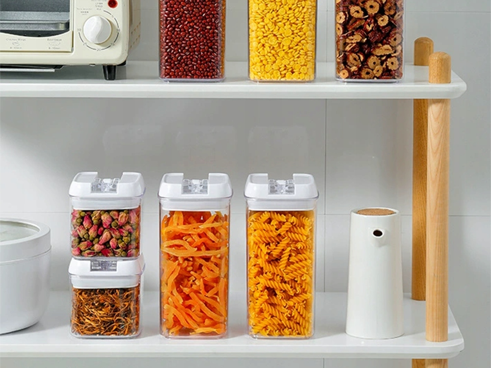 Erinevate suurustega anumate abil saate kõik toiduained ühte kohta korrastada. Nende modulaarne konstruktsioon võimaldab neid üksteise peale asetada, mis säästab ruumi kapis. Komplekt sobib hästi ka puuviljade, pähklite, kuivatatud puuviljade ja suupistete hoidmiseks.