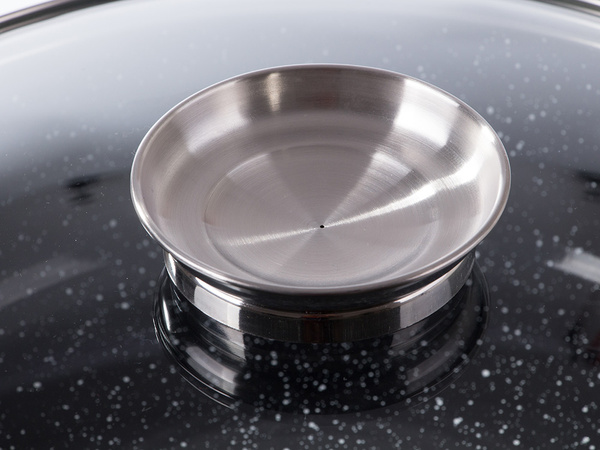 Le grand couvercle en verre avec soupape d'évacuation de la vapeur vous permet de contrôler la pression et la température à l'intérieur de la casserole.