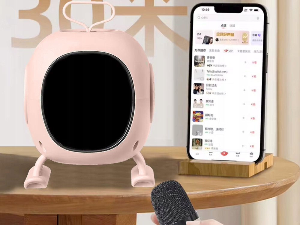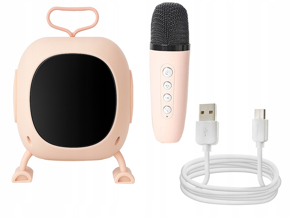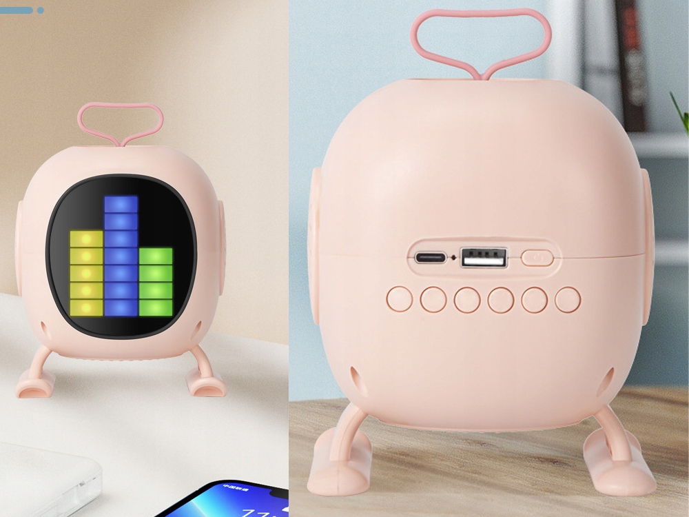 Le haut-parleur a la forme d'un petit téléviseur avec une poignée , ce qui lui confère un aspect particulièrement esthétique et moderne. Sa construction légère et ses pieds stables permettent de le transporter facilement et de le placer n'importe où. L'appareil est fabriqué à partir de matériaux durables, agréables au toucher et sûrs à utiliser.