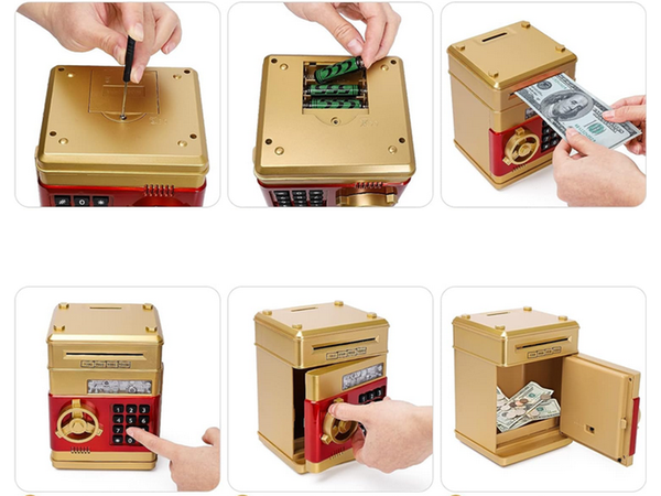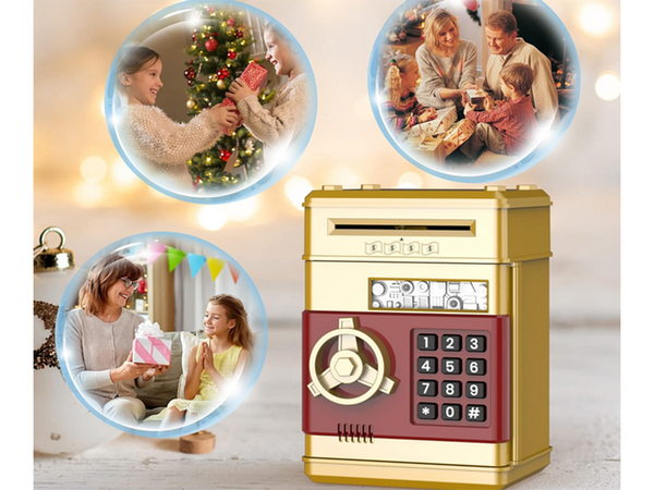 Die Spardose ist mit einem fortschrittlichen Verschlussmechanismus mit PIN-Code ausgestattet, sodass nur Sie Zugriff auf Ihre Ersparnisse haben.