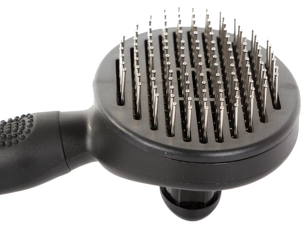 Die Bürstehat Nadeln am Ende, die in einer Kugel enden , damit sich Ihr Tier beim Kämmen nicht verletzt und das Auskämmen zum Vergnügen wird. Der Griff ist aus Gummi und rutscht nicht aus der Hand.