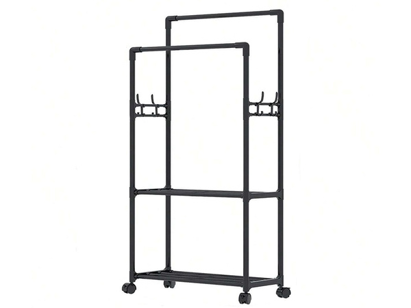 Das Regal istmit zwei Kleiderstangen ausgestattet, die es ermöglichen, eine große Anzahl von Kleidungsstücken auf die Bügel zu hängen. Die Stangen sind so angebracht, dass jedes Kleidungsstück bequem erreichbar ist.