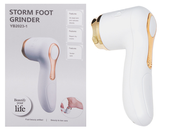Mit dem elektrischen Fersenschneider können Sie raue Haut oder Schwielen schnell entfernen. Er kann auch an anderen Stellen des Fußes verwendet werden, wo sich verdickte und abgestorbene Haut befindet.