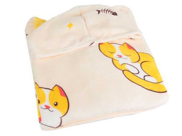 Džemperis ir izgatavots universālā izmērā, un tas ir piemērots sievietēm, vīriešiem un bērniem. To var mazgāt veļasmašīnā, tāpēc tas saglabās svaigumu un kalpos ilgus lietošanas gadus. Praktiskā kapuce sildīs galvu, pasargās no vēja un var tikt izmantota arī kā spilvens.