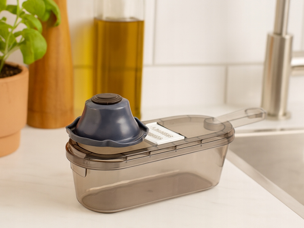 Griezējs ir ideāls risinājums jūsu virtuvei. Tas ir izstrādāts, domājot par maksimālu ērtību un precizitāti, piedāvājot dažādas griešanas un rīvēšanas iespējas. Visu papildina caurspīdīgs konteiners, kas atvieglo satura kontroli un kārtību darba laikā.