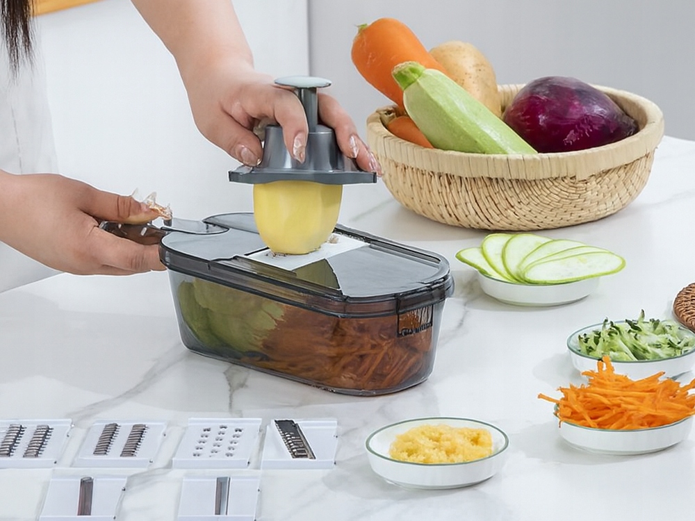 Daudzfunkcionāla dārzeņu un augļu rīve, smalcinātājs, griešanas rīks