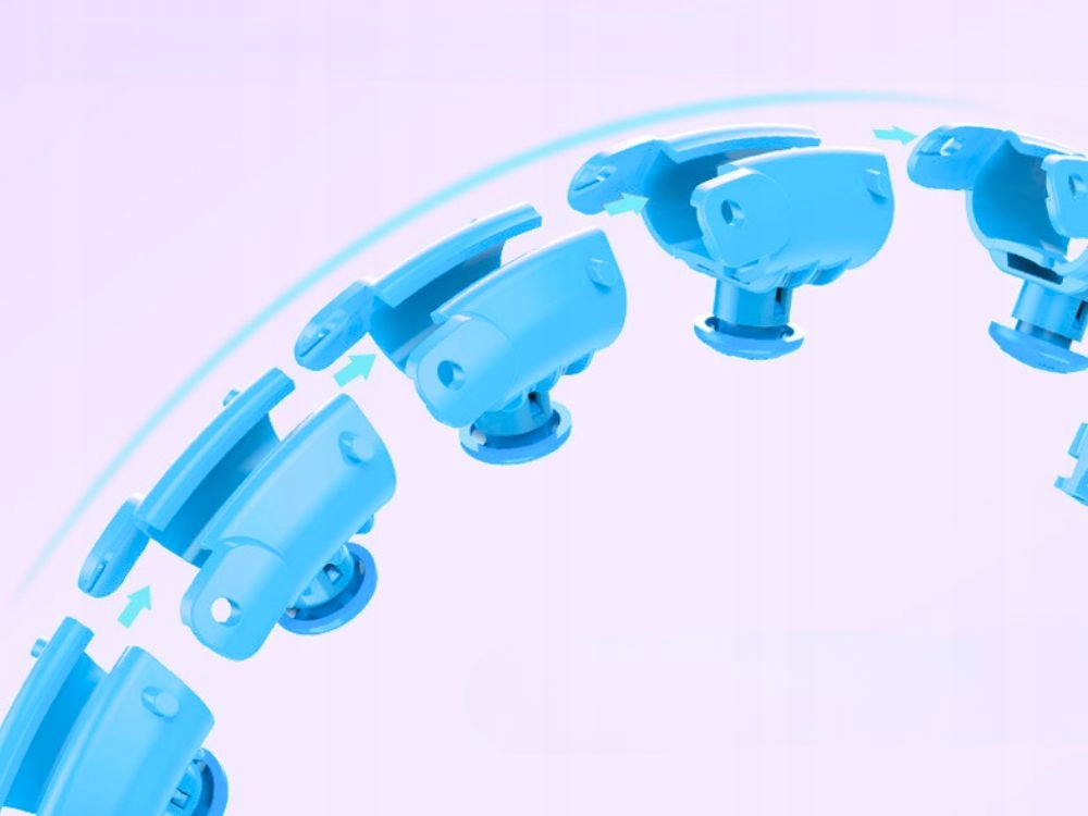 Katrs apļa segments ir aprīkots ar elastīgiem masāžas izvirzījumiem, kas treniņa laikā maigi stimulē ādu un uzlabo tās asinsriti. Pateicoties modulārajai konstrukcijai, hula hop var viegli pielāgot vidukļa apkārtmēram, kas ļauj to ērti lietot dažādiem cilvēkiem.