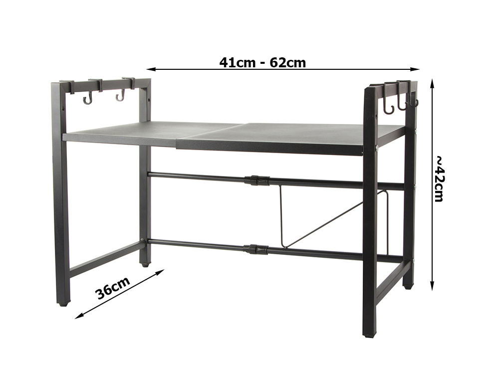 Regulowana półka kuchenna na mikrofalę, pozwoli zaoszczędzić dużo miejsca w kuchni. Dzięki temu można wygospodarować dodatkową przestrzeń na przechowanie przypraw jak również innych sprzętów kuchennych, np: czajnika, kawiarki, tostera, itp.