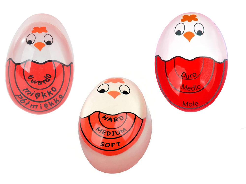 Jajko nie mierzy czasu jak minutnik, ale udaje jajko naturalne pokazując stopień ugotowania przez przeźroczystą skorupkę.