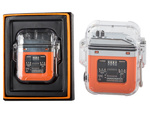 Zapalniczka wyposażona jest w uszczelki, gumowy przycisk do włączania latarki oraz uszczelniające zamknięcie - klips. To wszystko sprawia, że urządzenie po wpadnięciu do płytkiej wody nie zostanie uszkodzone.