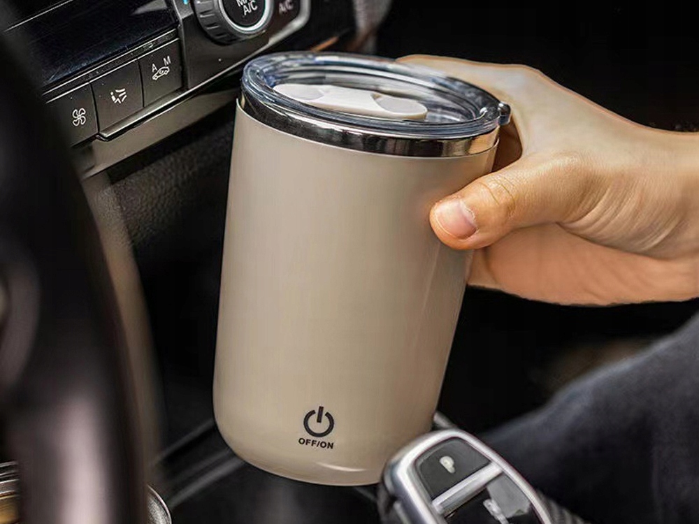 Na dole kubka znajduje się przycisk ON/OFF, który uruchamia mieszadło. Wystarczy jedno kliknięcie, by Twój napój został równomiernie wymieszany. Zasilanie poprzez USB sprawia, że możesz używać kubka w domu, w pracy i w samochodzie.