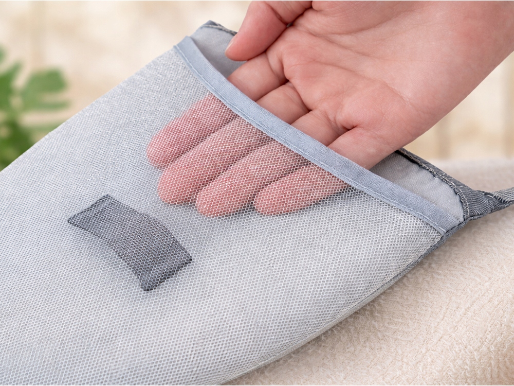 Rękawica została wykonana z materiału odpornego na gorącą parę oraz wysoką temperaturę, dzięki czemu skutecznie chroni dłoń podczas prasowania. Wielowarstwowa struktura zapobiega przenikaniu ciepła i wilgoci, zapewniając bezpieczną i komfortową pracę nawet przy intensywnym użyciu parownicy.