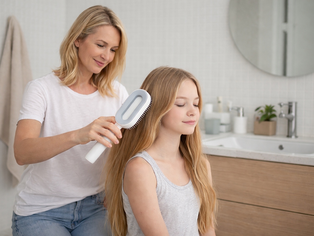 Szczotka antystatyczna to doskonałe narzędzie do codziennej pielęgnacji włosów – skutecznie rozczesuje zarówno cienkie, jak i grubsze pasma, bez ciągnięcia i wyrywania. Elastyczne ząbki zakończone kuleczkami delikatnie suną po skórze głowy, jednocześnie masując i pobudzając mikrokrążenie. Taki masaż nie tylko relaksuje, ale także wspiera wzrost włosów i poprawia ich ogólną kondycję.