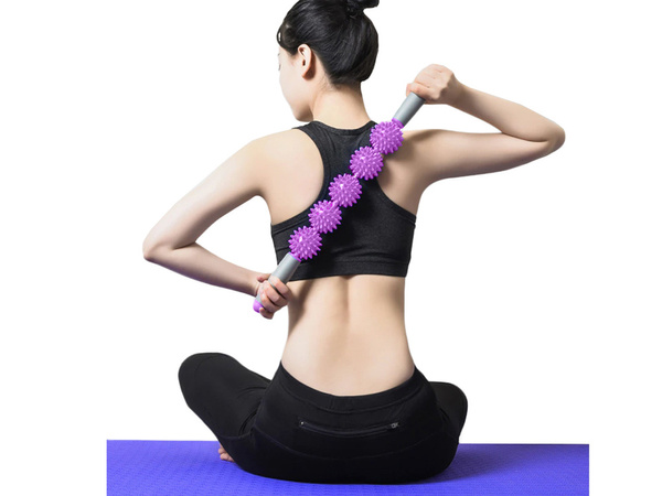 Masážny valec je vybavený 5 valcovými ostnatými guličkami umiestnenými blízko seba, ktoré sa otáčajú nezávisle od seba. Doba cvičenia jednej svalovej partie by mala byť približne 3 - 4 minúty.