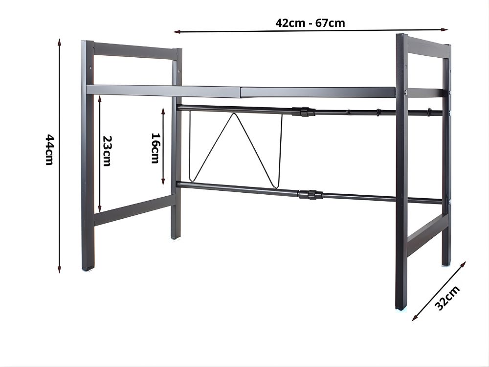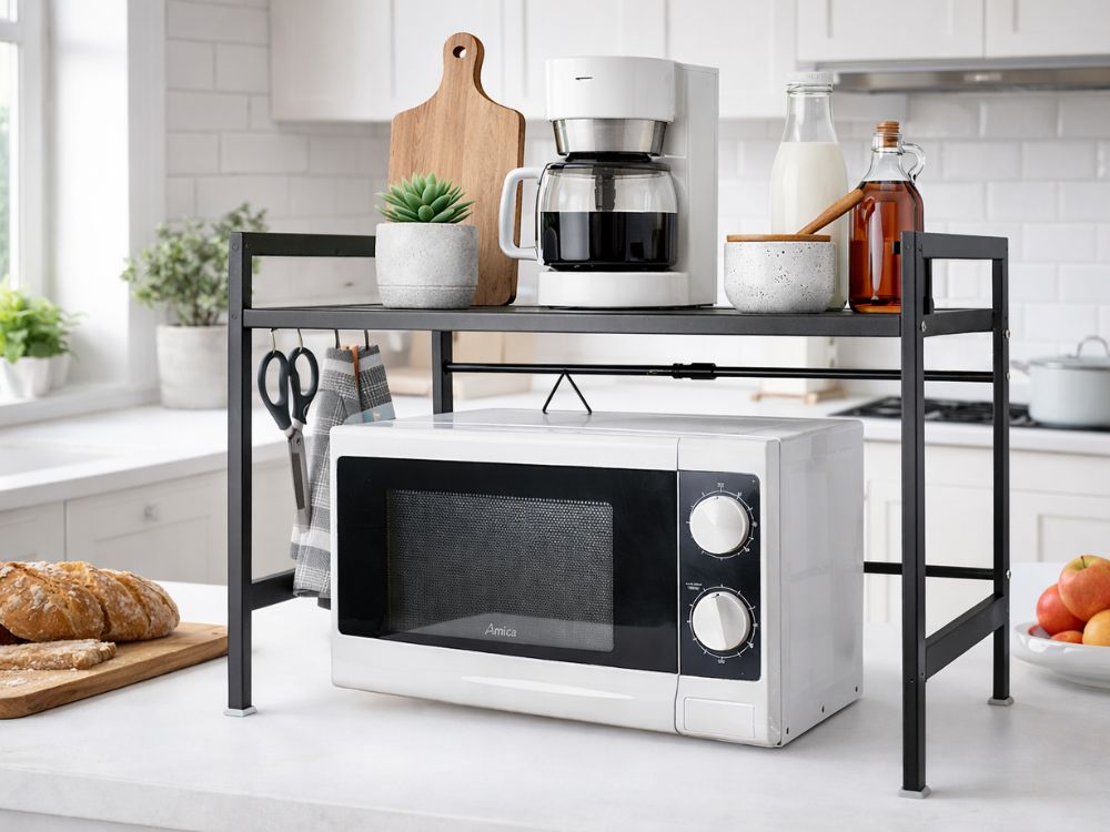 Praktická kovová kuchynská polica, ktorá vám umožní maximálne využiť priestor nad mikrovlnnou rúrou alebo inými malými spotrebičmi. Vďaka svojej pevnej konštrukcii vytvára dodatočnú úložnú plochu a udržiava vašu kuchynskú pracovnú dosku upratanú.