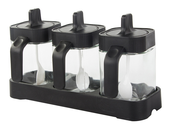 Sklenené nádoby na korenie s potravinovou lyžicou sada 3 kusov