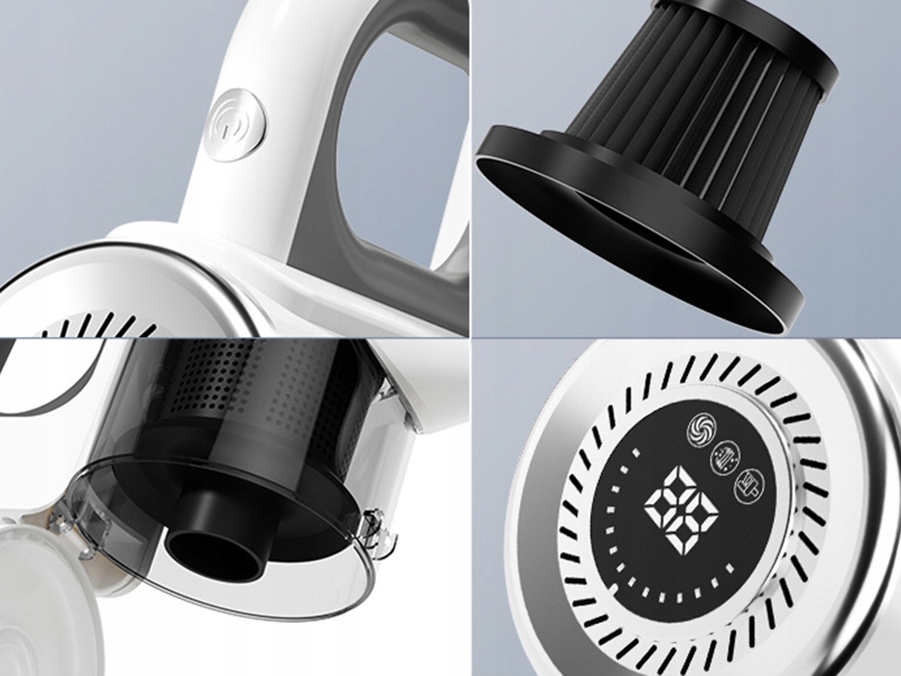 Stojanový a ručný bezdrôtový vysávač s výkonom 100 W je praktické zariadenie, ktoré vám umožní rýchlo a pohodlne upratať celý byt. Vďaka stojacej funkcii a možnosti odpojenia ručného modulu je ideálny na vysávanie podláh, nábytku, čalúnenia a ťažko dostupných kútov. Vysoký sací výkon a HEPA filter zaručujú účinné odstránenie prachu, alergénov a malých nečistôt