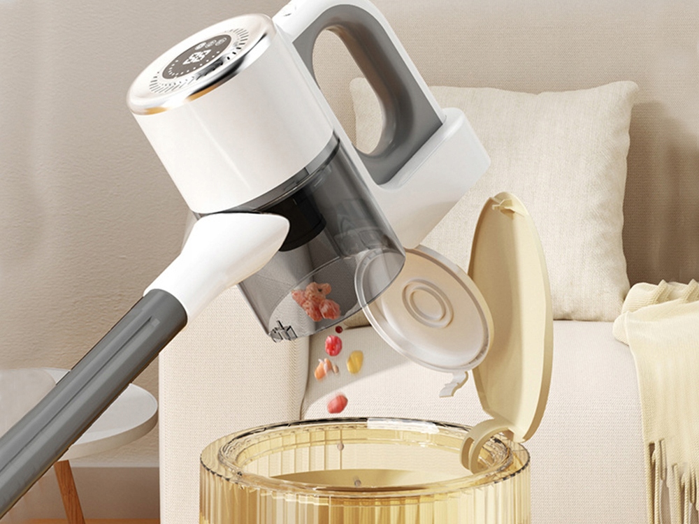 Vysávač má nádobu na prach s objemom 880 ml, čo vám umožňuje čistiť väčšie plochy bez nutnosti častého vyprázdňovania. Jednoduchý systém otvárania nádoby umožňuje rýchle a hygienické odstránenie nečistôt – stačí jedno kliknutie. Vďaka kompaktnému dizajnu je zariadenie pohodlné na skladovanie a ergonomická rukoväť zaisťuje pohodlie pri používaní aj počas dlhších upratovaní.