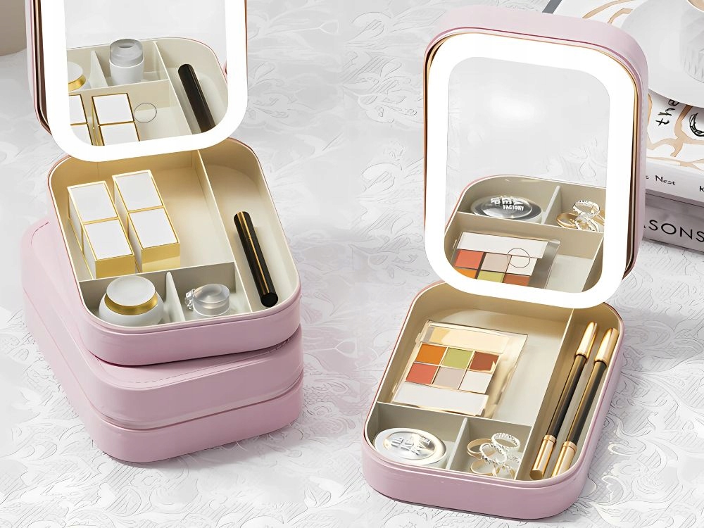 Zrkadlo na líčenie s led osvetlením organizér na cestovnú kozmetiku