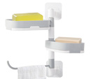Nasteno ali druge površine se pritrdi z močnim lepilom. V njem je prostor za dve milnici in držalo za brisače.