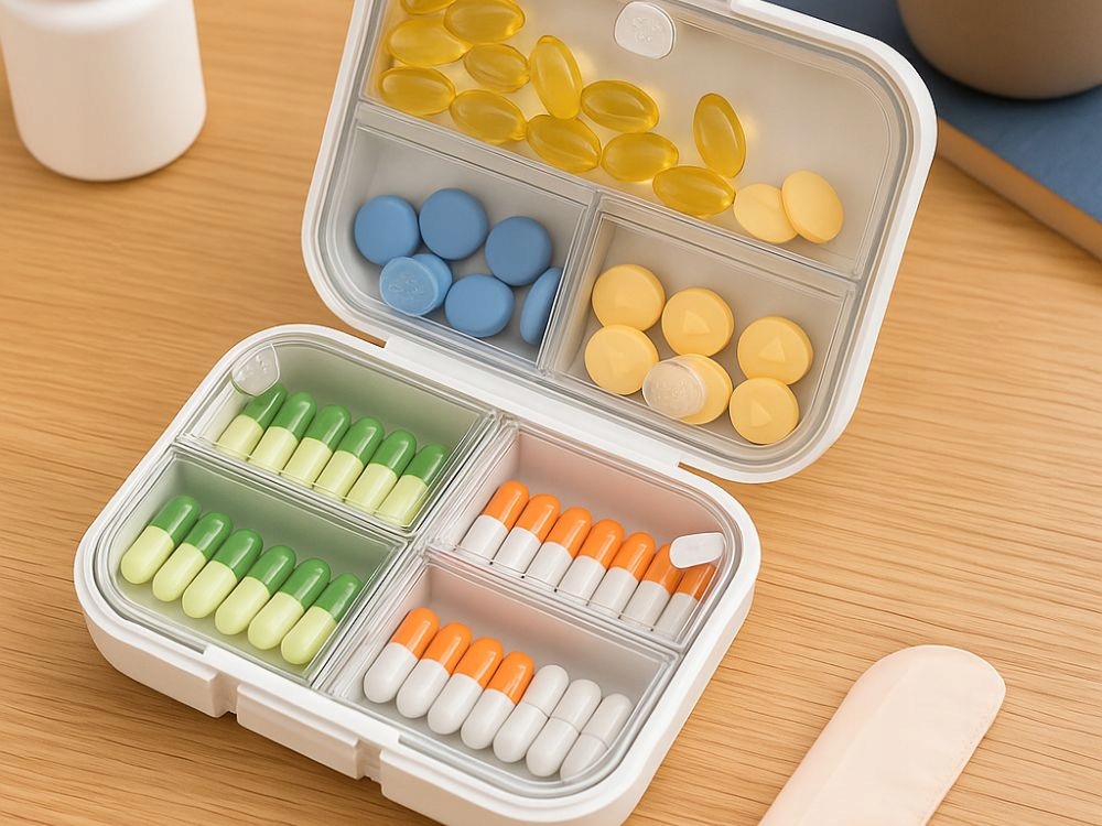 Ta posoda za zdravila in dodatke je nepogrešljiv pripomoček za vse, ki cenijo red in udobje. Omogoča vam varno shranjevanje tablet, kapsul in vitaminov na enem mestu, tako da jih imate vedno pri roki – doma, v službi ali na potovanju.