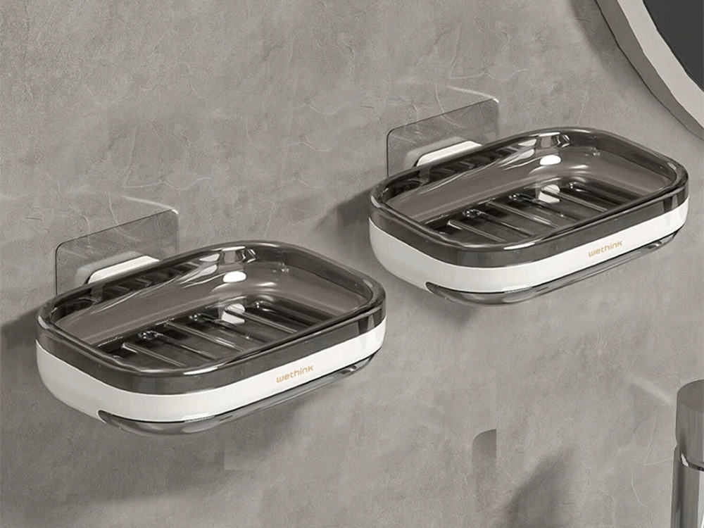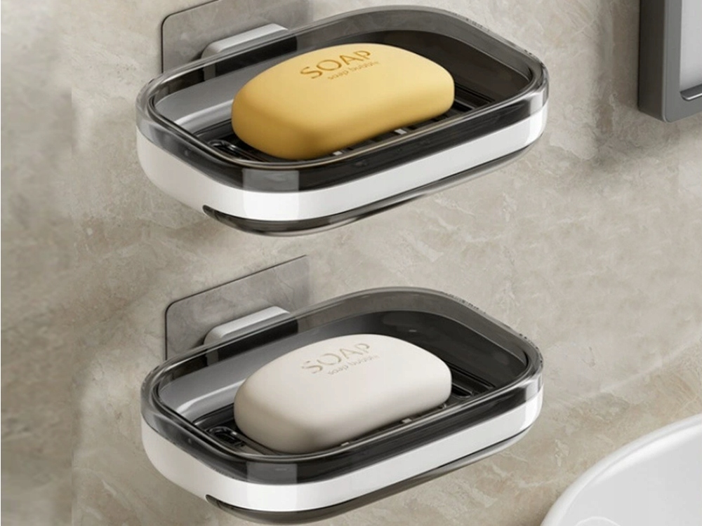 Posoda za milo z odtočnim kanalom za kopalnico, namestena na steno
