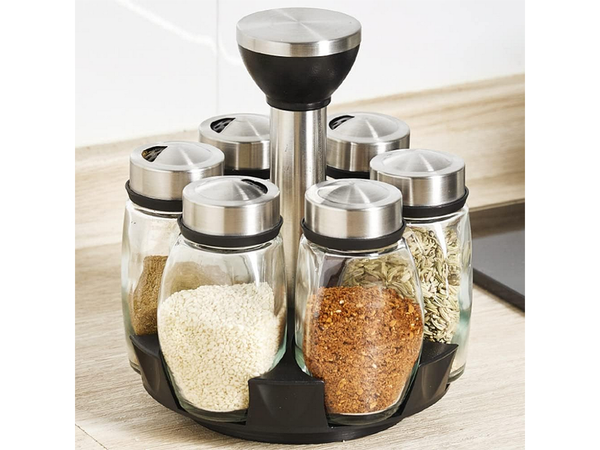 ORGANIZADOR DE ESPECIAS RECIPIENTES DE CRISTAL GIRATORIOS 6 PIEZAS ESPECIERO SALERO PIMENTERO
