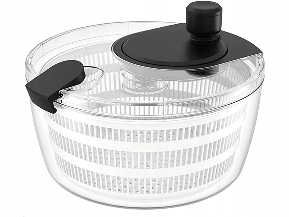 El mecanismo giratorio elimina eficazmente el exceso de agua de los productos en pocos segundos. El cierre hermético garantiza un cierre estable de la tapa y las paredes transparentes permiten controlar el proceso de centrifugado. De este modo, puedes estar seguro de que tu lechuga y tus verduras están perfectamente preparadas para servir.