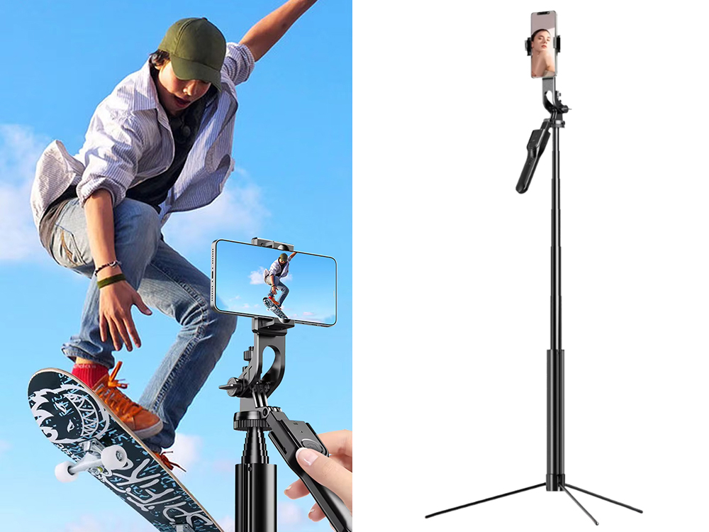 Gracias a su diseño telescópico, el palo se despliega de forma rápida y estable, y las patas antideslizantes del trípode garantizan la seguridad de uso incluso en superficies resbaladizas. Es el gadget ideal para quienes desean crear fotos y vídeos profesionales de forma sencilla, desde videoconferencias hasta vlogs y fotos de grupo.