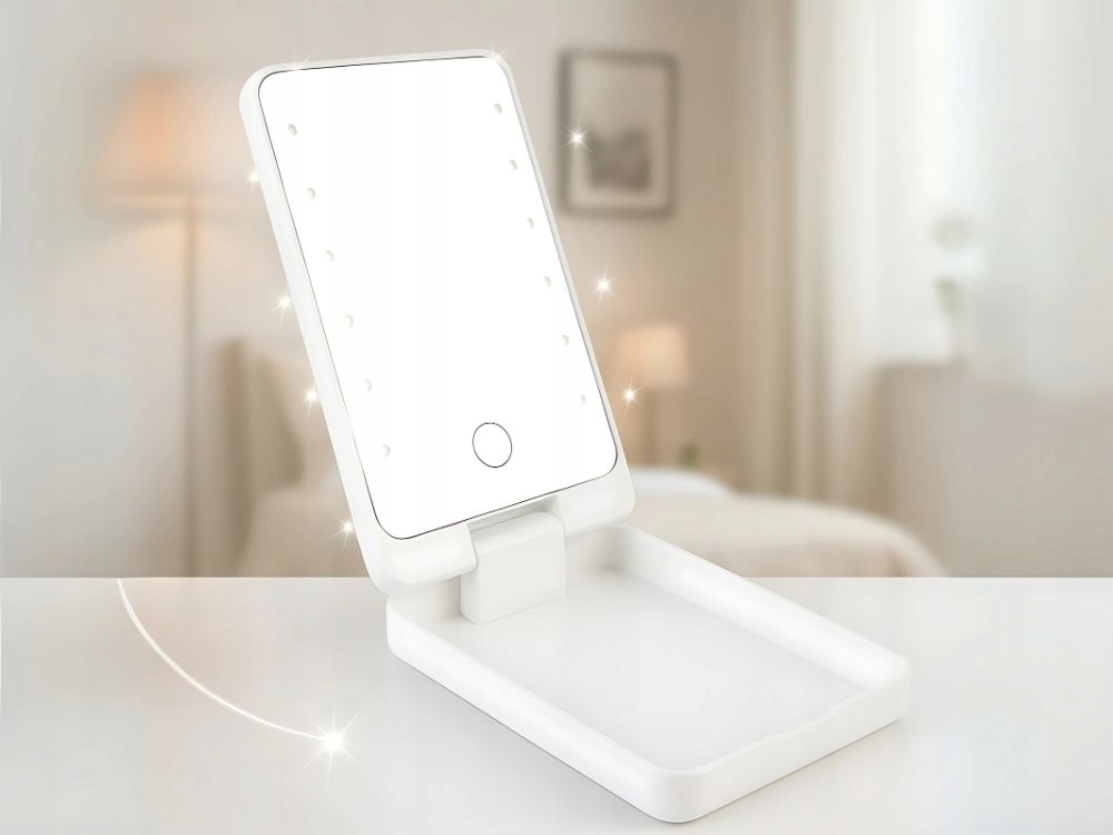 Gracias a su diseño plegable, el espejo se puede guardar fácilmente y llevar consigo de viaje. Es ligero, cómodo y estable, y su elegante diseño lo convierte también en un accesorio con estilo. Es un accesorio que apreciará cualquier persona que se preocupe por su aspecto y comodidad durante sus rutinas diarias de cuidado personal.